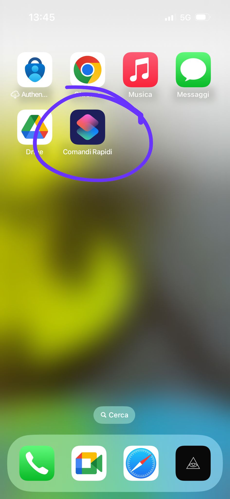 Individua e apri l’app "Comandi Rapidi" sul tuo iPhone. È l'app preinstallata che ti permette di creare automazioni e comandi personalizzati.