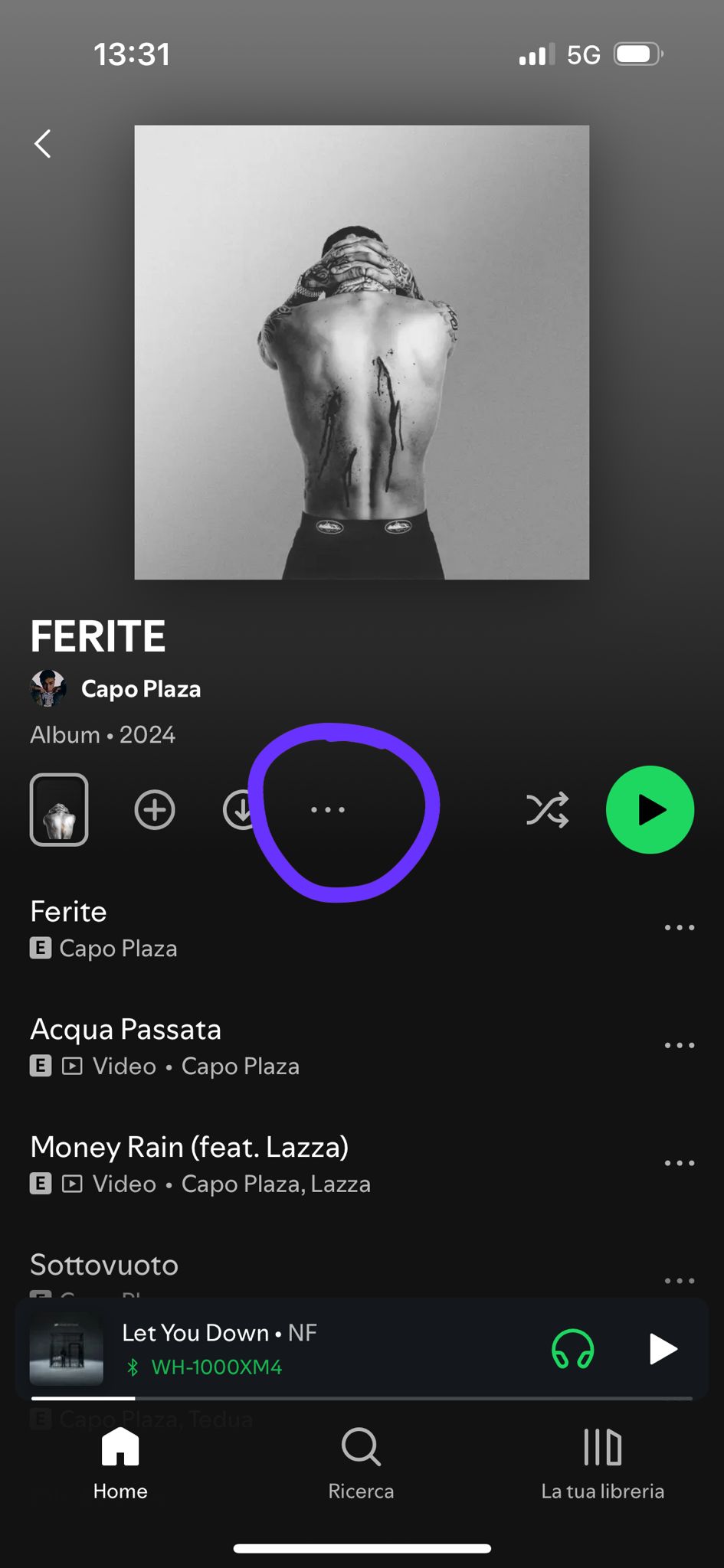 Apri l'album su Spotify, tocca i tre puntini per accedere al menu.