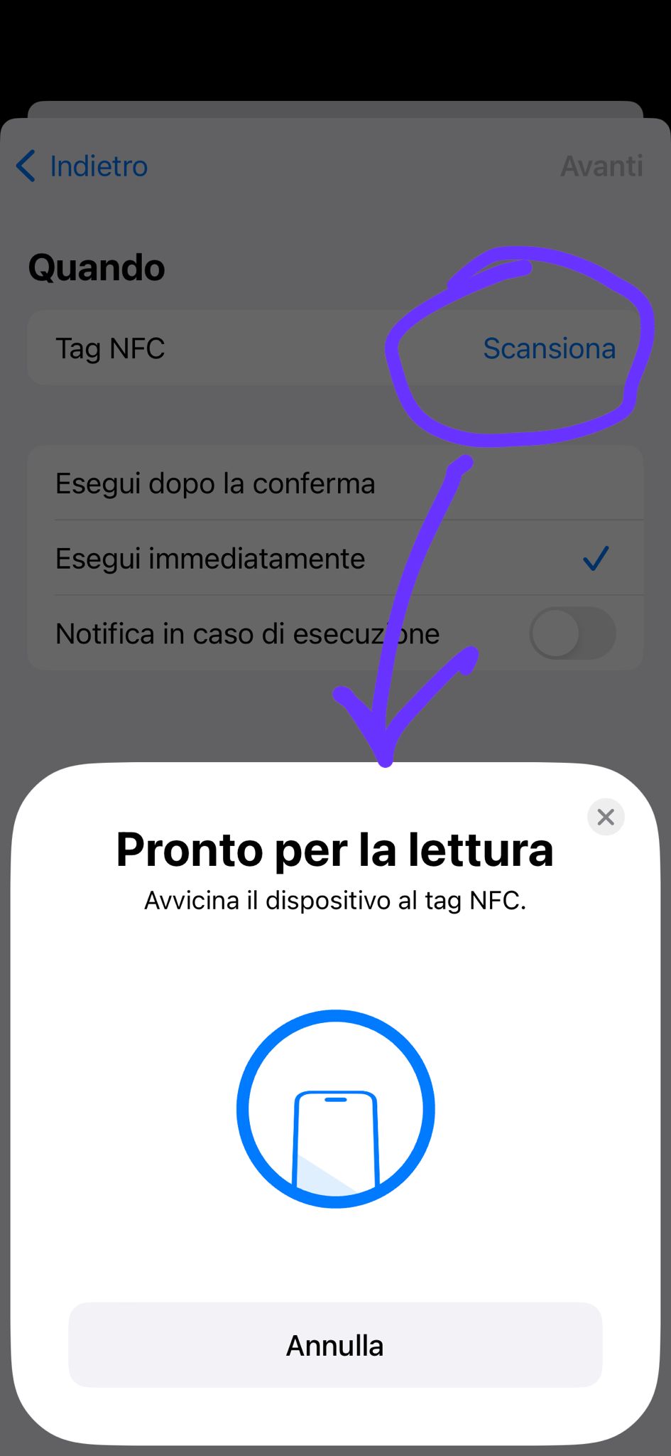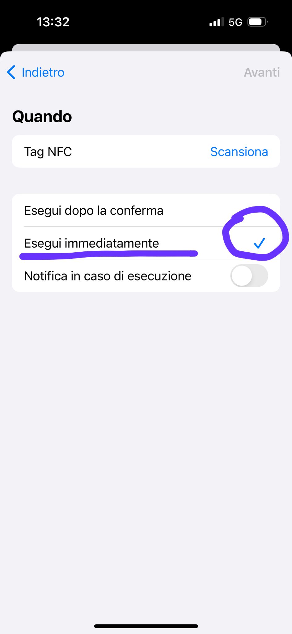 Dopo aver selezionato NFC, assicurati di selezionare "Esegui immediatamente" per far sì che l’azione venga eseguita senza richiedere conferma ogni volta che il tag viene scansionato.