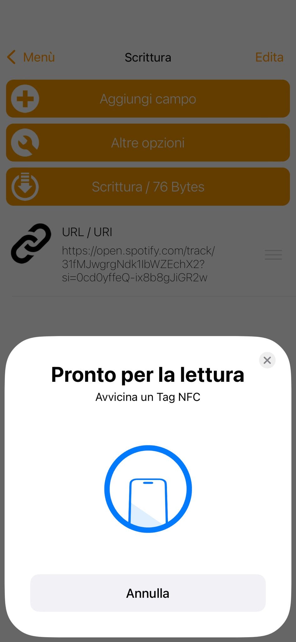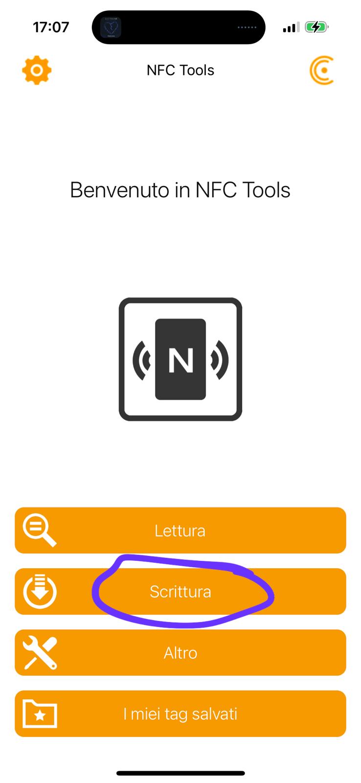 Apri l'App NFC Tools e clicca su ''Scrittura''